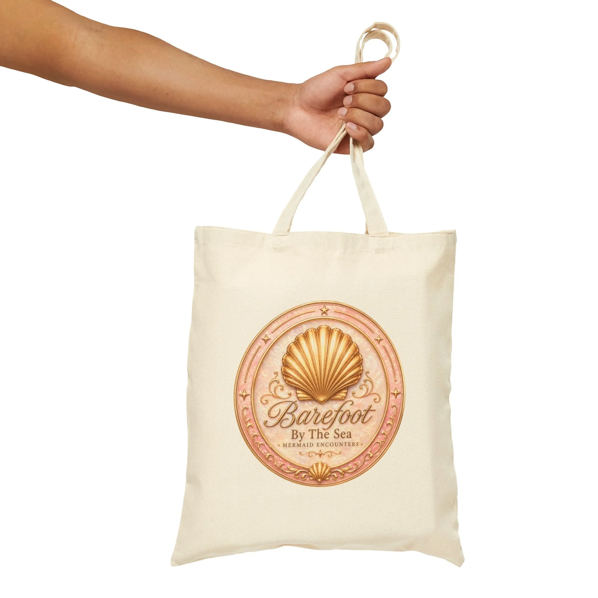 Barefoot By The Sea Canvas Tote — Beach Shell Logo Cotton Bag